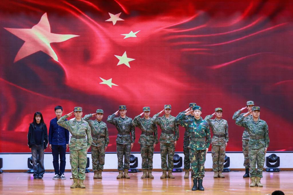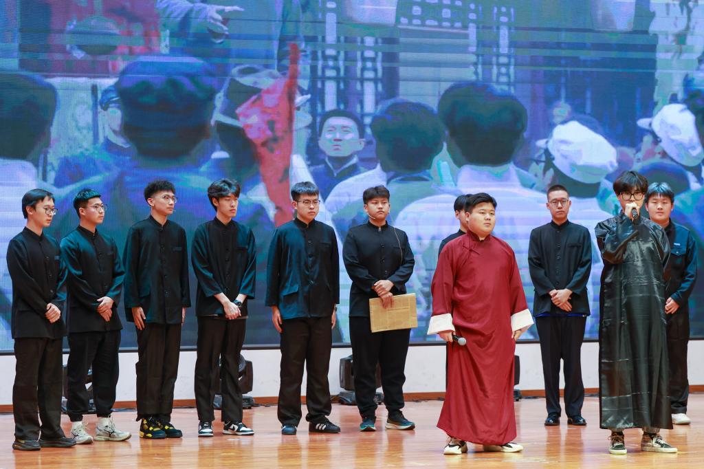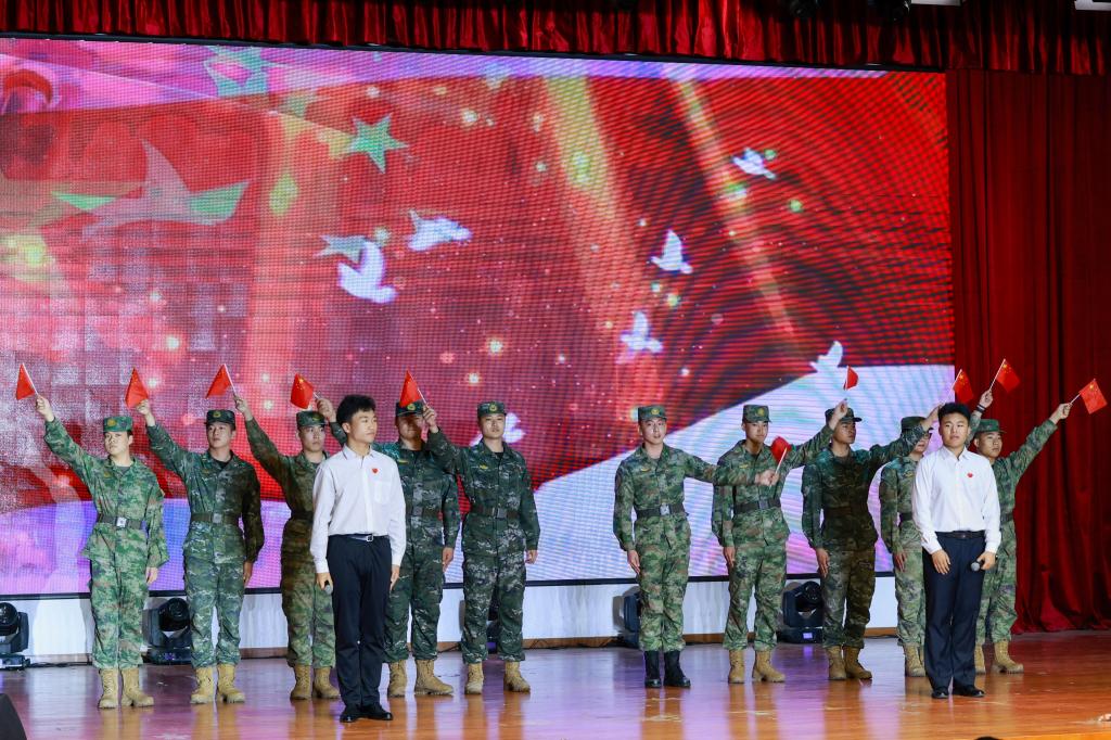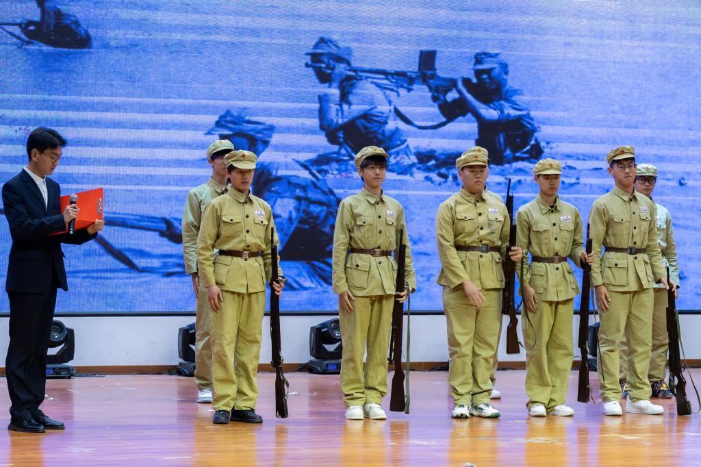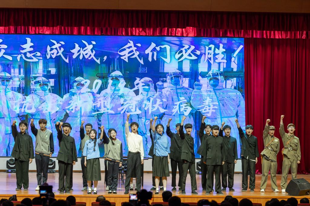 7个参赛学院以独具匠心的策划、精心设计的编排为现场师生呈现了一场精彩纷呈的演出。参加此次演出的选手,都是利用课余时间精心准备,创作剧本、挑选演员、感悟角色、反复排演、背景制作、服装挑选……,同学们认真对待、全力以赴,用精彩的表演生动地再现了热血青年爱国游行、奔赴战场保家卫国等一个个震撼人心的画面。