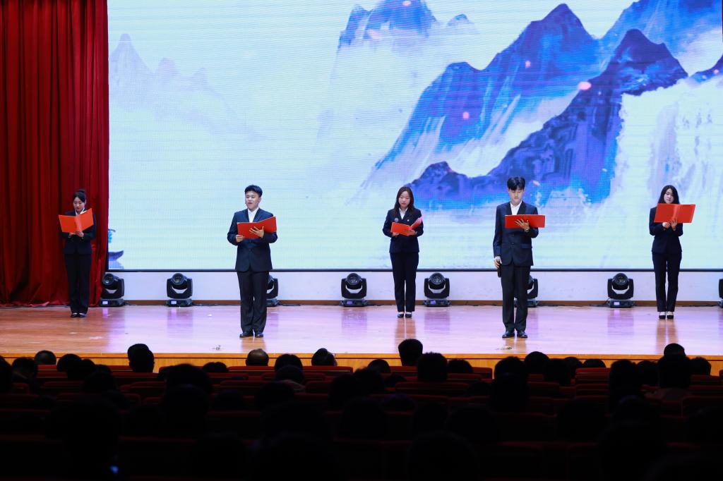 经过激烈角逐,铁道工程学院的作品《破晓》获得一等奖;铁道车辆学院的作品《觉醒》、通信工程学院的作品《狂飙》获得二等奖;铁道运输学院的作品《一声到,一生到》、铁道机车学院的作品《识字班》、城市轨道交通学院的作品《觉醒时代》、电气信息学院的作品《奋斗红色中国》获得三等奖。参会嘉宾分别为获奖学院进行了颁奖。