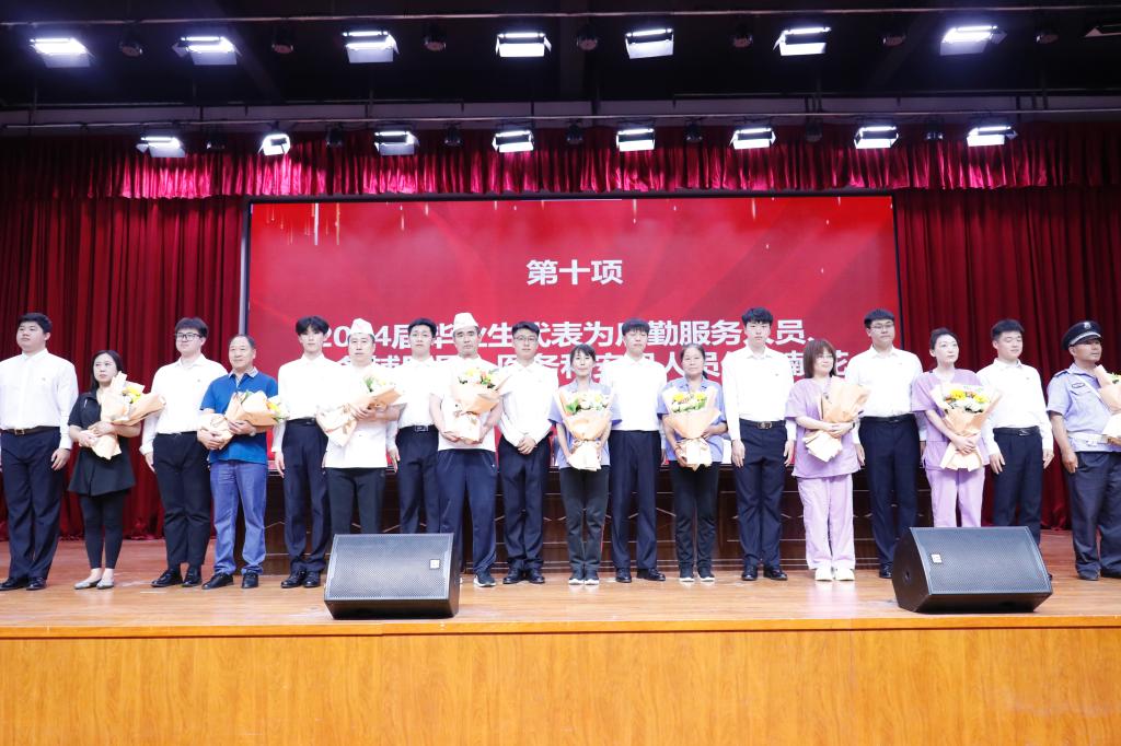 图9 毕业生向教师、辅导员、班主任、后勤服务人员、舍务辅导员、医务和安保人员代表献花