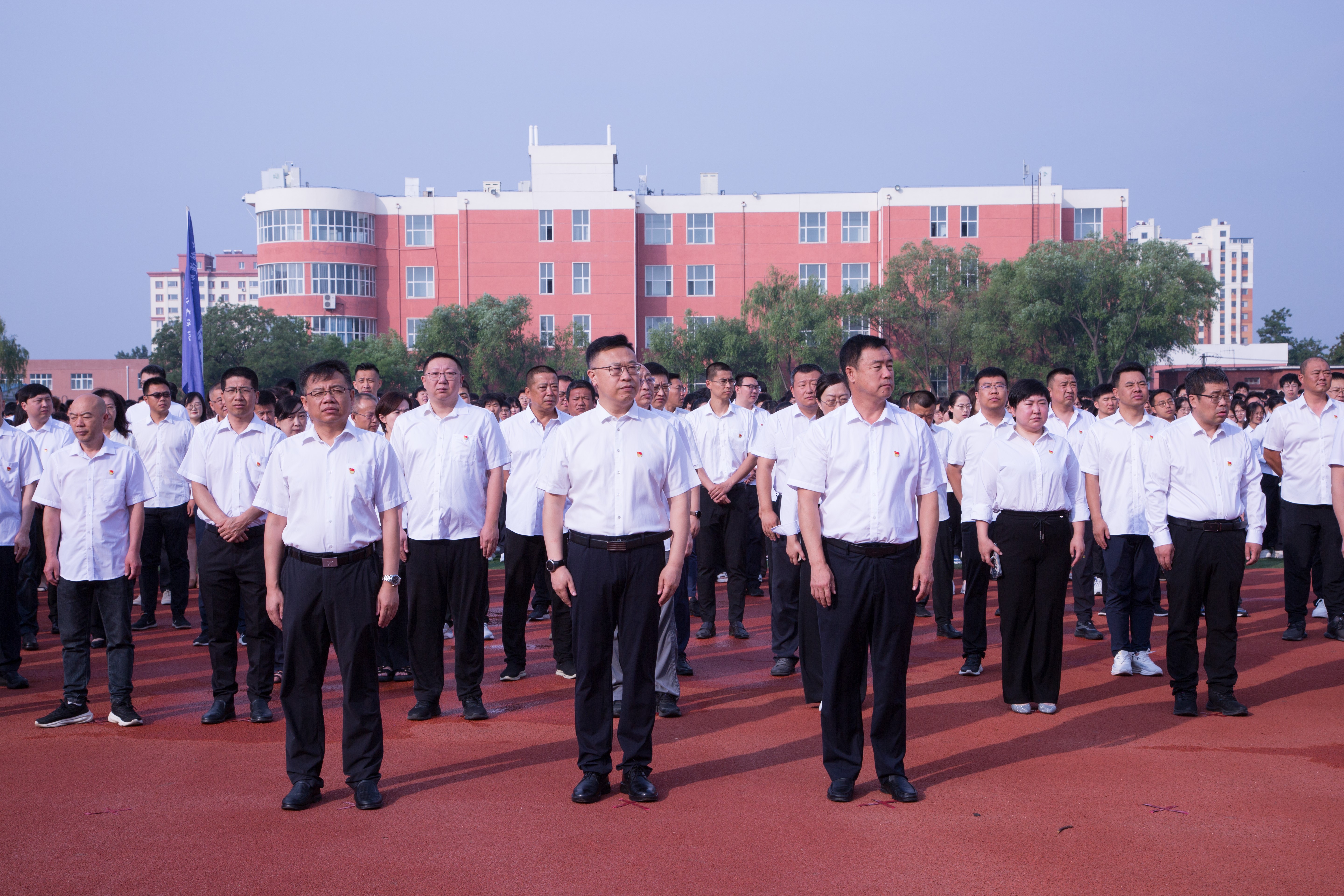 为庆祝中国共产党成立103周年,激励全体党员进一步坚定信念、弘扬正气、担当实干。7月1日上午,beat365正版唯一官网在凌河校区运动场举行庆祝中国共产党成立103周年“七一”升旗仪式。党委书记曾庆军,党委副书记、院长岳贵鑫,党委委员、副院长赵明出席仪式,全体中层干部、党员,学生代表参加仪式,仪式由团委书记王文野主持。