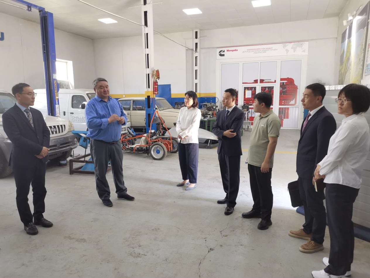 出访期间,双方还就蒙古乌兰巴托中蒙铁路“墨子工坊”项目建设中列车驾驶技术训练中心及铁路物流管理实训室采用的操作技术要求、设备的技术标准、生产工艺流程等进行交流研讨,最终形成了适于应用在蒙古国铁路的列车驾驶技术标准和铁路物流管理技术标准。交流研讨会后,在蒙古国立科技大学机械与交通学院院长普日普道尔吉陪同下学校代表团参观了蒙方学校实训室。