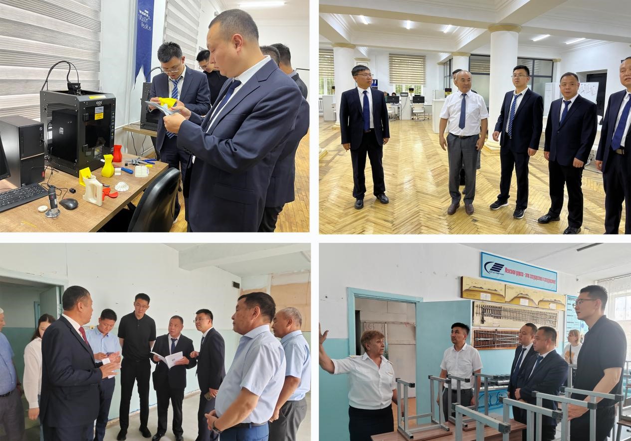 出访期间,在吉尔吉斯斯坦国立技术大学国际关系副校长奇米罗夫·阿基尔贝克·乌尔卡利耶维奇和教育部、铁道部相关领导陪同下参观了第97号铁路职业学院实训室。双方就“墨子工坊”实训室建设中工程测量技术、BIM技术应用技术、工程制图技术与CAD技术进行了深入交流。同时双方还围绕极端地质条件下铁道桥梁隧道等交通基础设施的建造与运维安全等关键共性技术难题开展研讨交流。