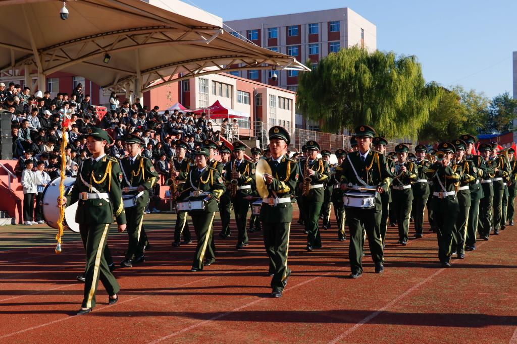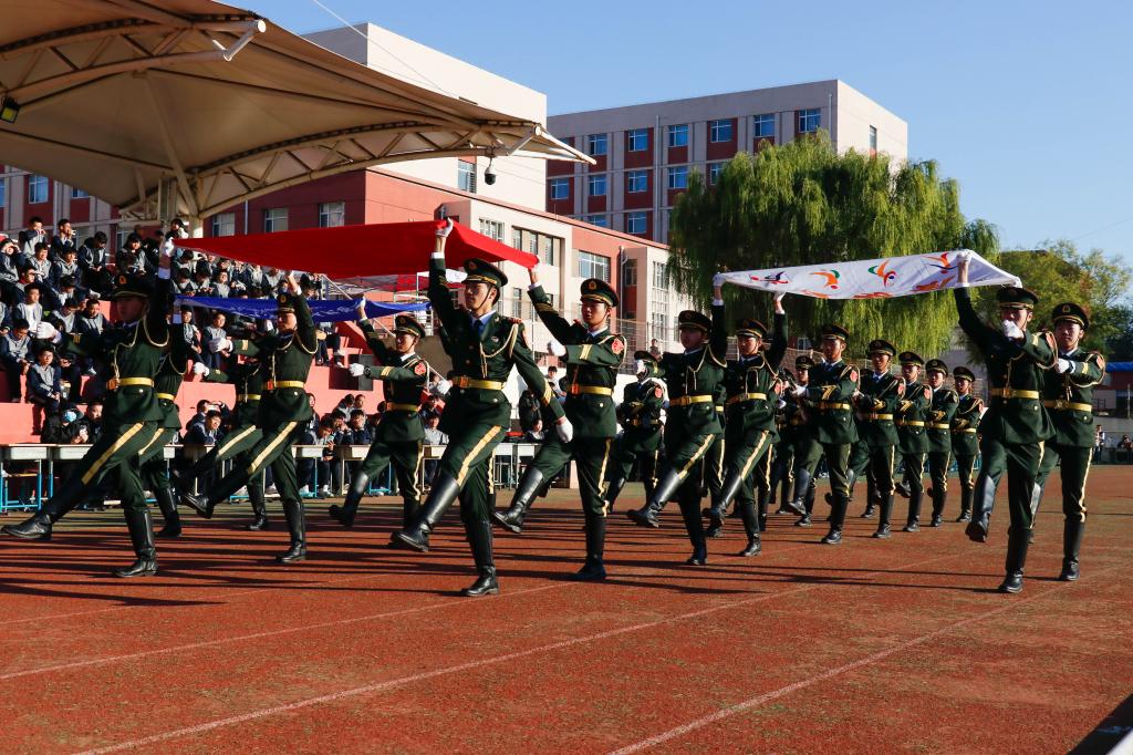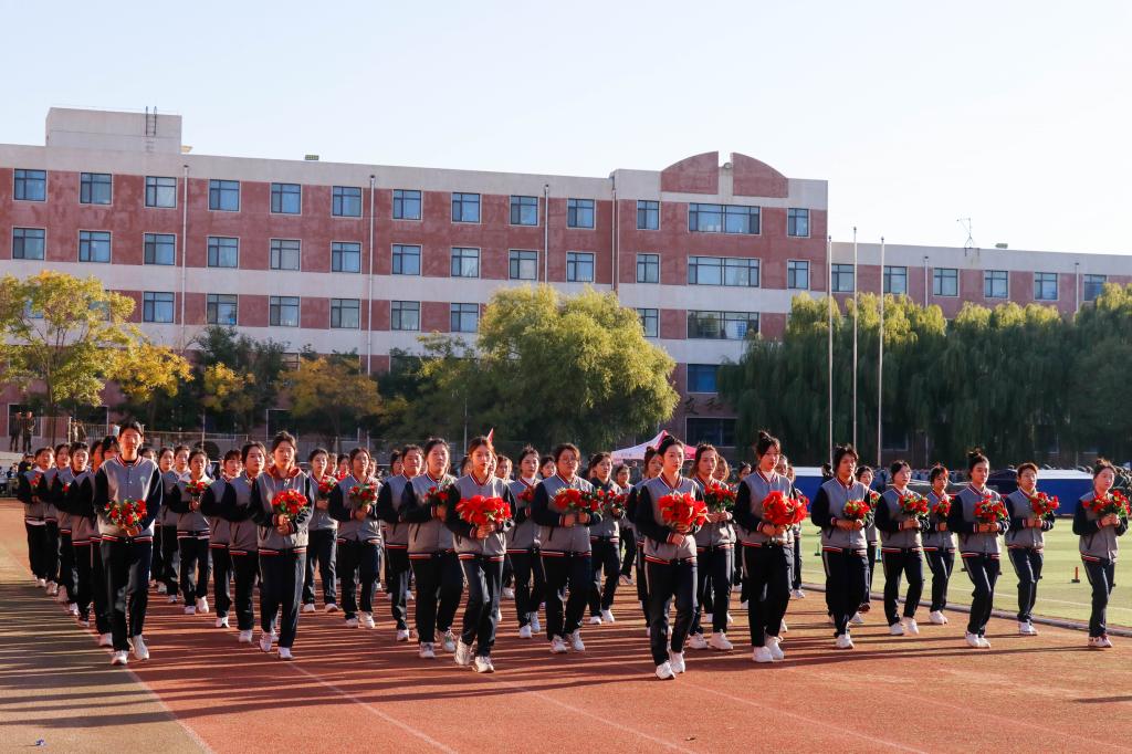 在国旗护卫队的引导下,军乐方队、红旗方队、花环方队、鲜花方队、裁判员方队以及各学院代表方队,迈着矫健的步伐依次走过主席台,接受大会主席团的检阅。他们步伐整齐、口号嘹亮,以饱满的精神面貌,充分展现了辽beat365师生的蓬勃朝气和昂扬斗志。