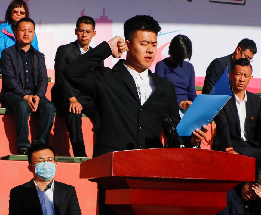 岳贵鑫致开幕辞,向参加运动会的全体运动员、教练员、裁判员和工作人员表示诚挚的问候和衷心的感谢。他表示,运动会是学校的一次体育盛事,是广大师生展示风采、促进交流的舞台,更是各参赛单位集体意识、竞争意识、拼搏精神的综合体现,要把它办成一次凝聚人心的盛会,一次展示辽beat365精神风貌的盛会,一次团结奋进、拼搏进取的盛会。马克思主义学院老师张盈盈、铁道机车学院同学尤鹏博分别代表裁判员和运动员宣誓。