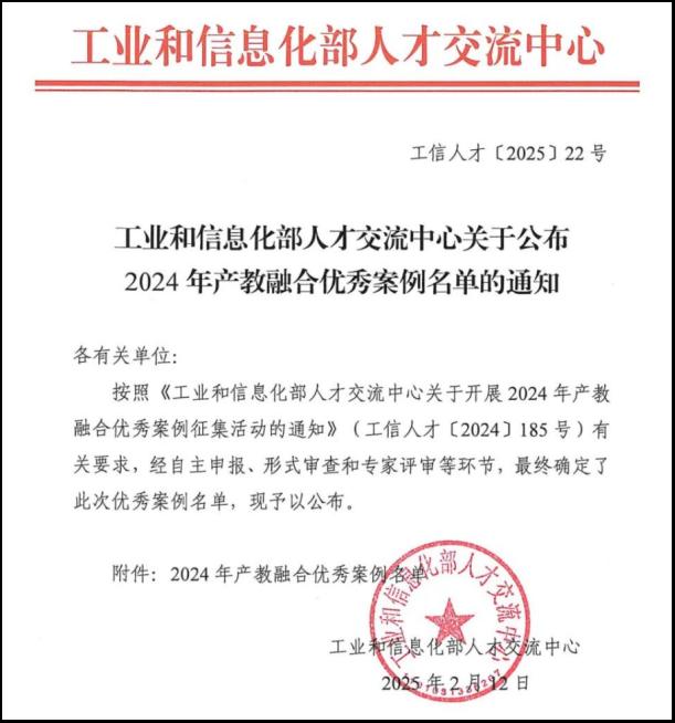 喜报!学校荣获工业和信息化部人才交流中心产教融合优秀案例