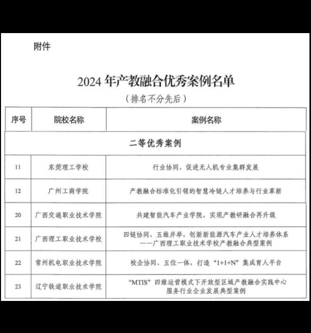 近日,工业和信息化部人才交流中心公布了2024年产教融合优秀案例评选结果,学校申报的《“MTIS”四维运营模式下开放型区域产教融合实践中心服务行业企业发展典型案例》荣获二等优秀案例,这是对学校长期以来坚持产教融合、校企合作办学理念的充分肯定。