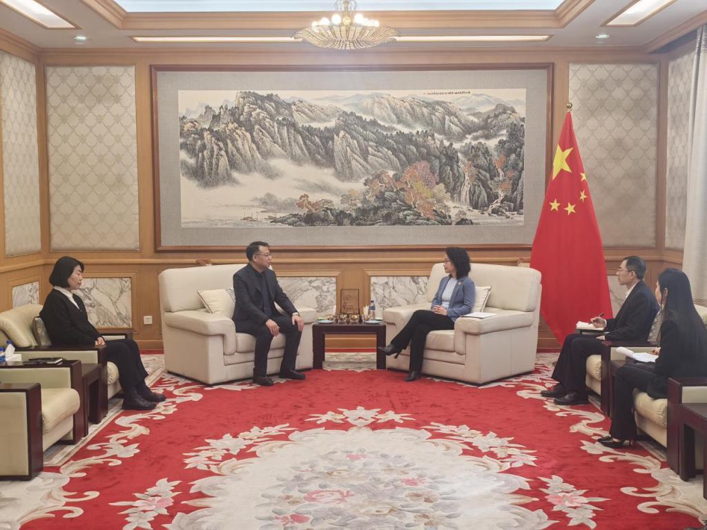 仪式前,赵明率代表团与中国驻蒙古国大使沈敏娟进行亲切会谈,并详细介绍了辽宁省“墨子工坊”项目品牌及学校中蒙铁路“墨子工坊”项目建设情况。沈敏娟详细了解了中蒙铁路“墨子工坊”项目特色、项目现况、项目定位及预期效果,并表示此项目建成对促进中蒙两国教育文化交流具有重要意义。同时,对项目今后可持续发展给出了意见建议,希望“墨子工坊”为助力“走出去”企业发展发挥积极作用。