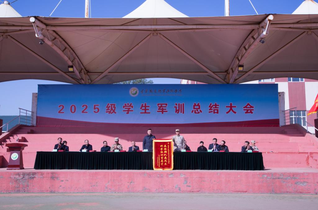 金秋时节,硕果累累。10月23日上午,学校2025级学生军训总结大会在火车头运动场隆重举行。65651部队中校副参谋长李广磊、少校参谋孟曦,学校党委书记曾庆军,党委副书记、校长岳贵鑫,纪委书记李洪涛,副校长陈学宽出席大会,各二级学院党总支书记、副书记,2025级辅导员、班主任及全体2025级3177名学生参加大会,会议由副校长赵明主持。