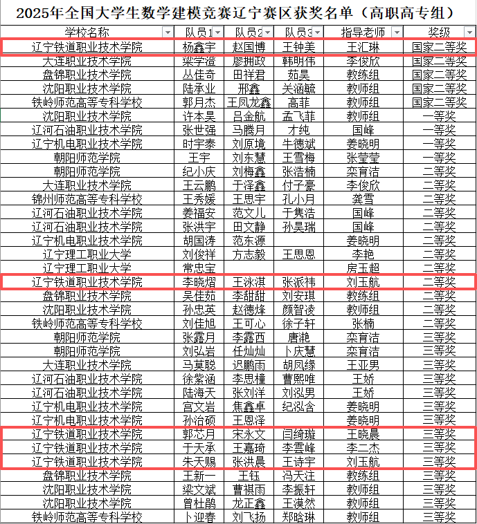 2025年“高教社杯”全国大学生数学建模竞赛于9月4日—7日举行。近日,2025年全国大学生数学建模竞赛成绩揭晓。beat365学子荣获高职高专组国家二等奖1项,辽宁省二等奖1项、三等奖3项。基础部指导的5支参赛队获奖,占辽宁赛区获奖总数的14%,获奖数量和获奖率在全省高职院校中名列前茅。
