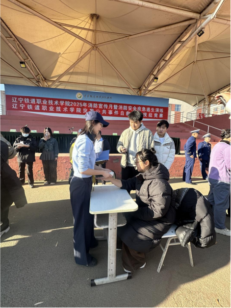 活动期间,两校区结合自身实际推进差异化演练与培训。凌河校区5400余名师生开展消防安全应急逃生演练,通讯组发出预警后,各场所引导员迅速到位开启应急照明,师生们沿预定路线有序撤离至集合点,随后完成人数清点上报,全程无推挤滞留。演练同步嵌入突发公共事件自救自护技能竞赛,设置灭火器操作、应急救护两大项目,参赛师生在专业人员点评指导下,熟练掌握灭火器识别使用、伤员包扎转运等实用技能。双凌校区1100余名师生则接受“理论+实操”专项培训,在消防救援专业人员指导下,分学生公寓、教学楼开展应急疏散演练,并模拟电梯起火故障场景。此外,还在办公楼与融合楼广场组织灭火器使用培训;在融合楼一楼交叉开展消火栓操作培训,各环节均由负责人签字确认培训质量。