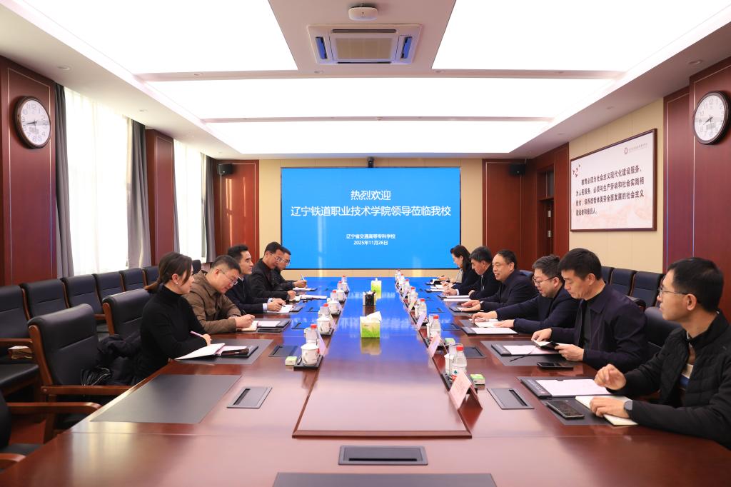 在辽宁省交通高等专科学校,该校校长孙延鹏、副校长王宇与调研组就办学提质升级相关工作深入交流。王洪明介绍,学校正积极推进专业与人工智能的创新融合,此次调研旨在学习该校办学先进经验,为校际深化合作筑牢基础。孙延鹏分享了学校“十五五”规划谋篇布局思路,双方就三方面达成合作共识:一是推进课程互选与学分互认,依托线上平台实现优质教学资源共享;二是整合专业建设实践资源,实现校际优势互补;三是强化师资交流与科研协作,共同服务区域经济发展。