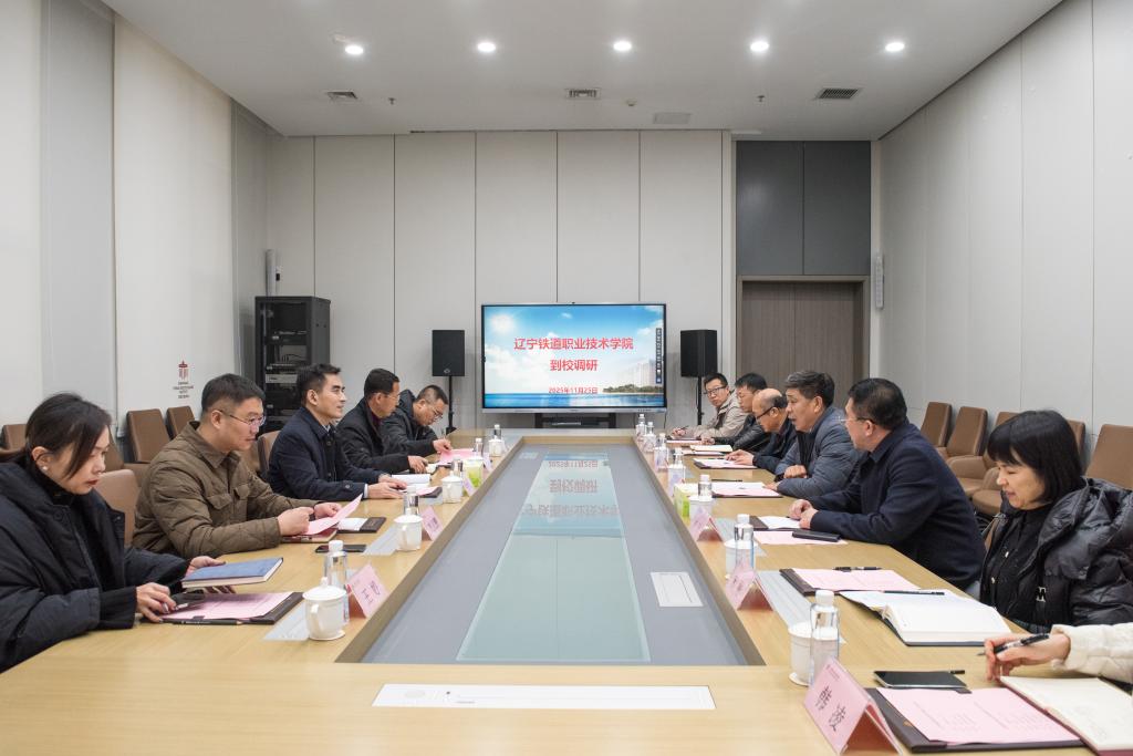 在中铁九局集团有限公司,中铁九局副总工程师、辽宁区域总部总经理董光与调研组就校企协同育人工作座谈交流。王洪明表示,学校深耕轨道交通核心专业,与中铁九局业务领域高度契合,希望以此次调研为契机,在实习实训基地共建、课程体系优化等方面深化合作,实现校企深度融合,助力辽宁区域建设。董光指出,双方应主动扛起社会责任,共建铁路行业人才培养高地,以服务国家战略、推动行业进步为目标,深化产学研用融合,促进教育链、人才链与产业链、创新链有机衔接,为铁路事业高质量发展注入动力。