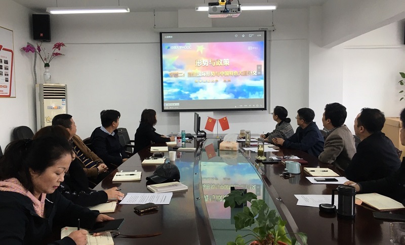 2019年11月4日上午,澳门网投官方网站党委组织学院在职处级干部、党委委员、党支部书记、副书记,在学院802会议室观看形势与政策讲座专题视频。