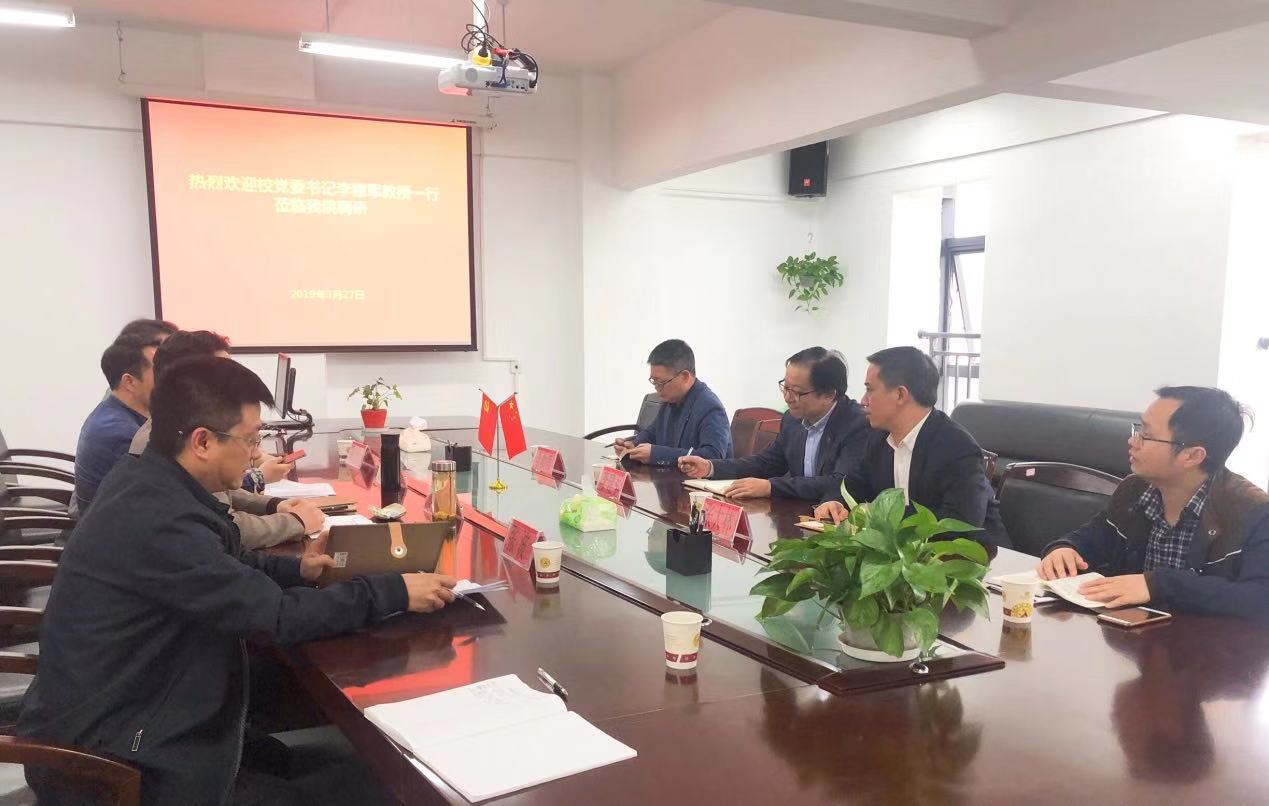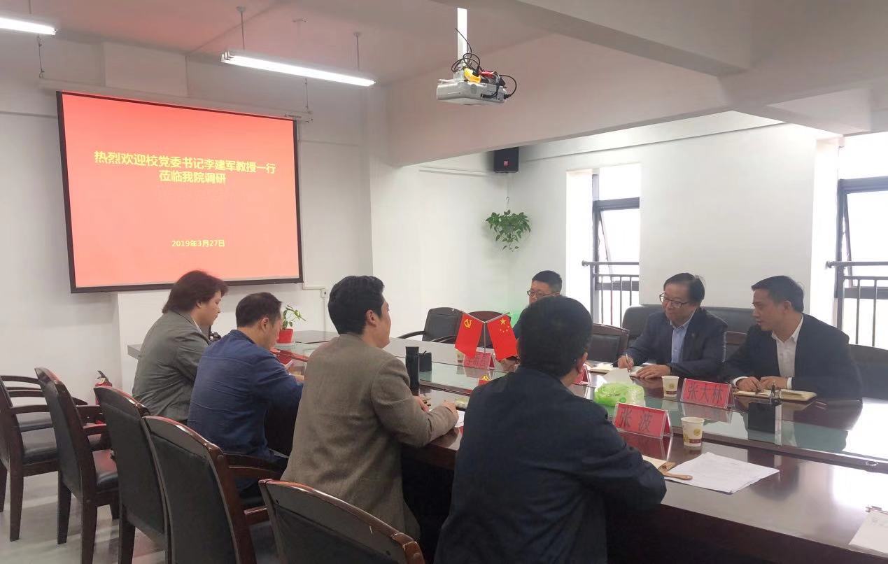 2019年3月27日下午,在校党委组织部部长李昕昌、校党委行政办公室主任张大林两位同志的陪同下,校党委书记李建军同志莅临澳门网投官方网站进行实地工作调研。澳门网投官方网站党委书记范斌同志、党委副书记、院长穆维平同志、副书记张波同志、副院长青科同志等班子成员参加了调研会。