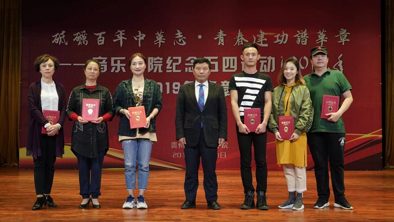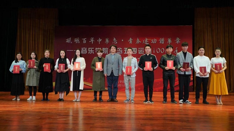 音乐学系学生党支部书记周晓冰、戏剧系学生党支部书记陈静、舞蹈系学生党支部书记徐玉香、院学生科科长、团委书记宋超为学院2018年度优秀共青团员、优秀共青团干部颁奖