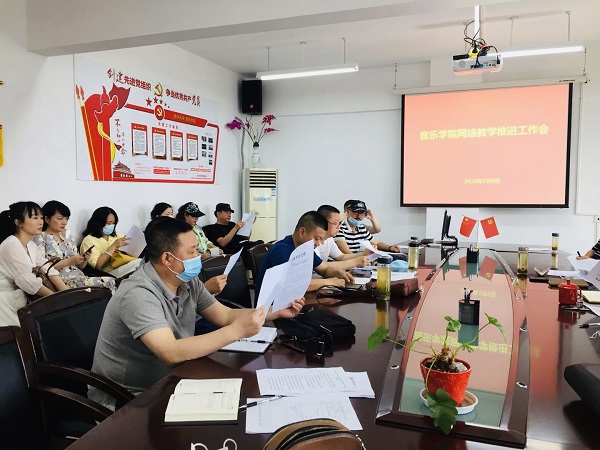 新冠肺炎疫情防控特殊时期,澳门网投官方网站按照“停课不停教、停课不停学”的原则,自3月2日起,在线上展开教学。此次会议中,各系教研室主任对这段时间以来的线上教学情况进行汇报。整体上教学进度按照规定计划进行,但是由于音乐专业的特殊性,网络教学也存在网速不稳定,学生接受不流畅,大课师生互动以及课外展开受限,学生在家没有乐器等问题。教师们也根据各自的情况对教学思路和手段不断进行调整,以最大程度保证教学质量。关于音乐系还未开展的《视唱练耳》、《合唱》等6门课程,学院领导与各教研室主任、相关教师进行商讨,课程负责人将带领任课老师对课程的网络在线教学进行规划与设计,以确保教学工作进一步推进。