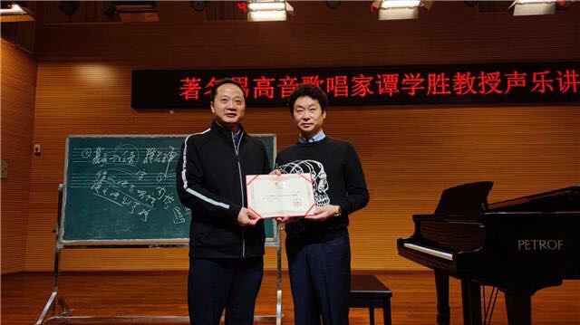 2020年10月20日上午10:00,澳门网投官方网站艺术节进行了一场别开生面的声乐大师课——著名男高音歌唱家谭学胜教授声乐讲座。谭教授理论与技巧相结合,连说带唱,深入浅出,把抽象的声乐理论形象化、具体化,现场气氛热烈。讲座现场澳门网投官方网站院长穆维平还为谭学胜教授颁发客座教授聘书。