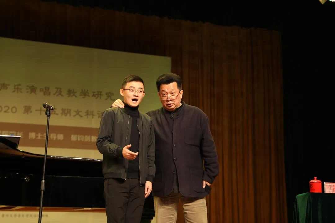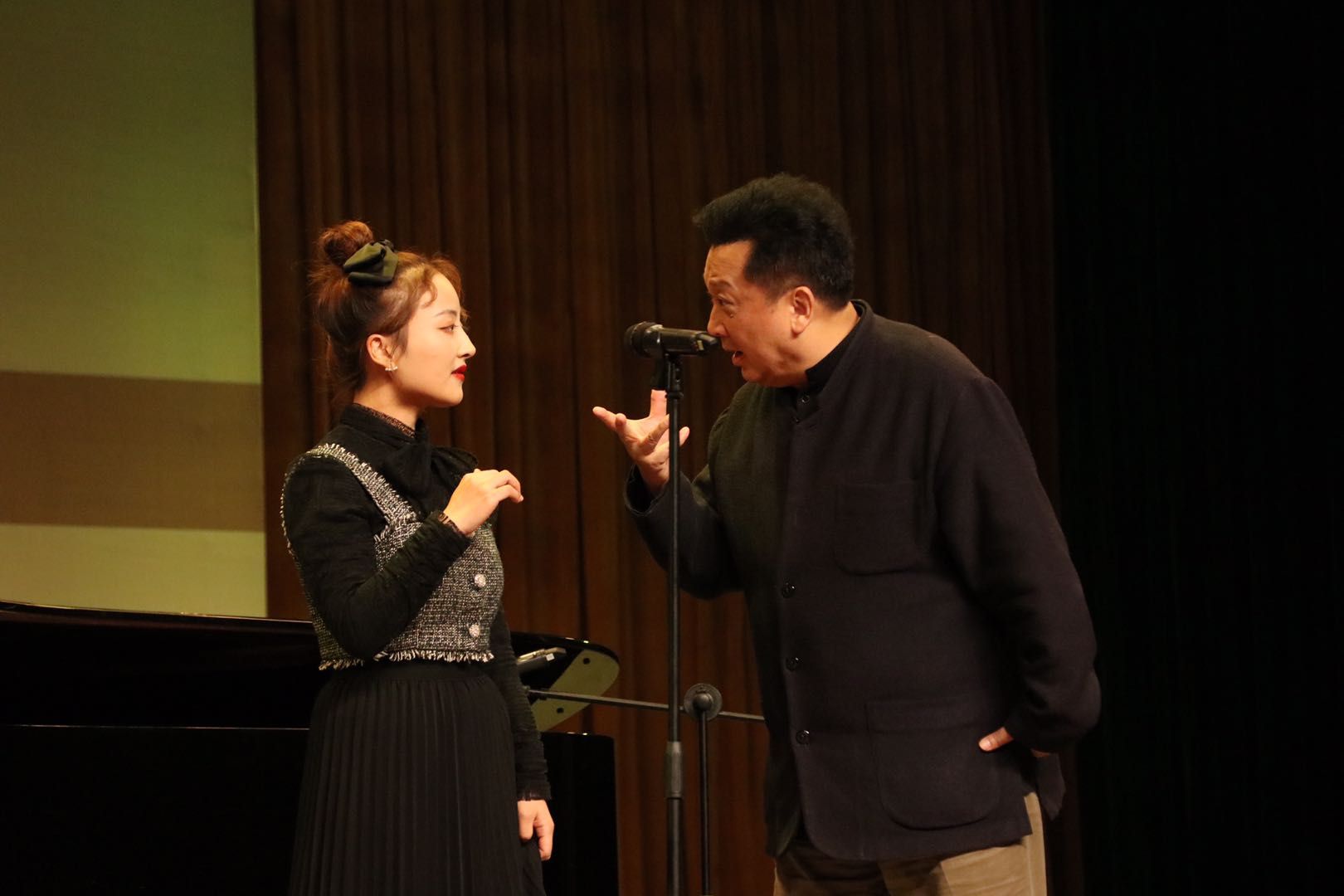 在这场大型公开课上,郁钧剑教授以现场教学的方式,对同学们进行了一对一的指导。在郁钧剑教授的现场指导下,同学们演唱出来的效果有了明显的对比和提升。现场掌声阵阵,气氛十分热烈。