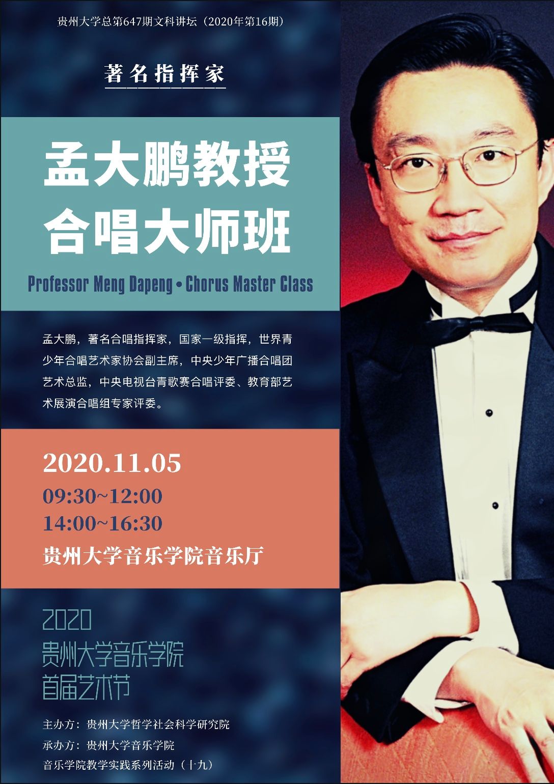 2020年11月5日上午9:00,澳门网投官方网站音乐厅座无虚席,著名指挥孟大鹏教授的公开课正式开讲了!澳门网投官方网站师生及来自全省各高校、中小学的合唱指挥教师200余人,参加并认真聆听了本次生动有趣的合唱公开课 。这也是澳门网投官方网站艺术节系列活动之一的“合唱大师班”公开课。