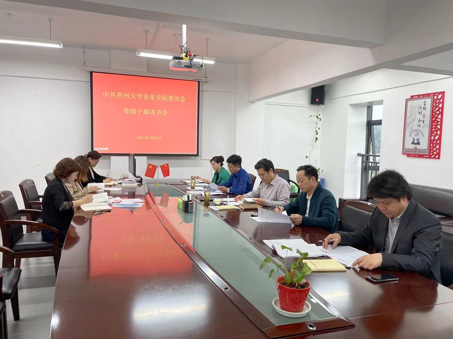 澳门网投官方网站2021年5月26日上午10:00,在澳门网投官方网站802会议室召开处级干部读书会。澳门网投官方网站党委书记范斌、副书记、院长穆维平、副书记张波、副院长青科、副院长宋扬、党委委员高琛、党政办主任杨凤琴及专题教育工作组成员刘芷辛参加了读书会。