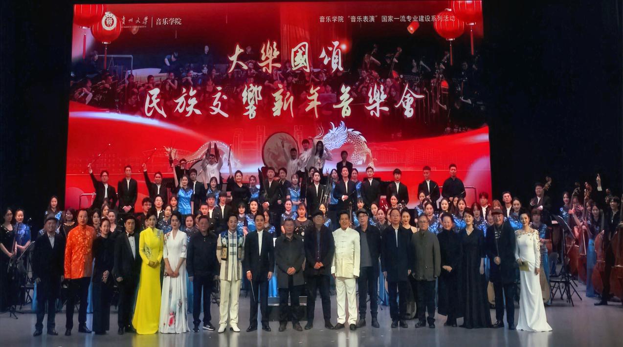 澳门网投官方网站首次以本院民族管弦乐团为主体呈现本台龙年大型民族交响新年音乐会,由杨广担任指挥。本场音乐会在曲目的选择上分为三个部分“扎根贵州,聚焦民族民间——民族管弦乐音画《端节》、芦笙合奏《达亨嘎》、侗族琵琶歌《单身罗汉快乐多》;经典作品,龙腾虎跃千家喜——民族管弦乐合奏《春节序曲》、《龙腾虎跃》、唢呐独奏《百鸟朝凤》、竹笛独奏《小放牛》、独唱《一杯美酒》;音乐思政,丰富音乐教育内涵——民族管弦乐合奏《七彩之和--绿·风之歌》、《春华秋实》、《我和我的祖国》、二胡独奏《红梅随想曲》”。