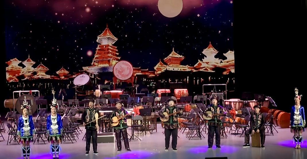 芦笙乐舞合奏《达亨嘎》,达亨嘎可译为吹芦笙的小伙,乐曲主要描写一群朝气蓬勃的小伙子和美丽动人的姑娘们,一起吹着芦笙翩翩起舞,庆祝脱贫攻坚后的美好生活。